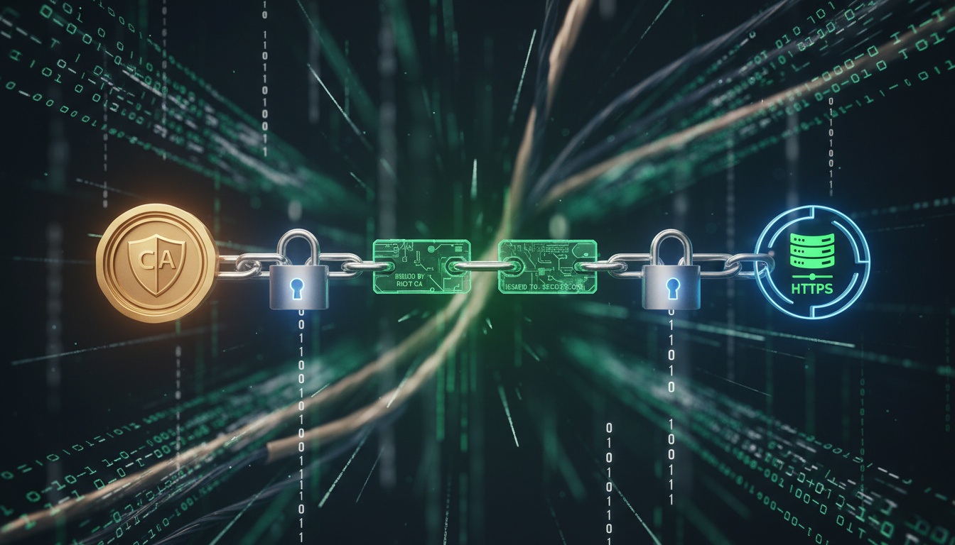 Certifikatkedjor bygger förtroende för säker kommunikation. Rotcertifikat hanteras av betrodda CA:er. SSL/TLS Trust Chain in Practice: How Certificate Verification Really Works förklarar praktiken.