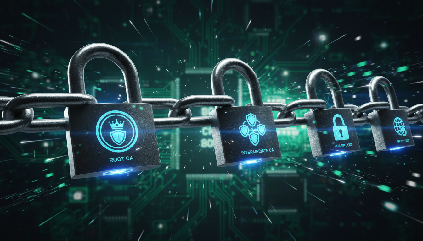 Certifikatkedjor bygger förtroende för säker kommunikation. Rotcertifikat hanteras av betrodda CA:er. SSL/TLS Trust Chain in Practice: How Certificate Verification Really Works förklarar praktiken.